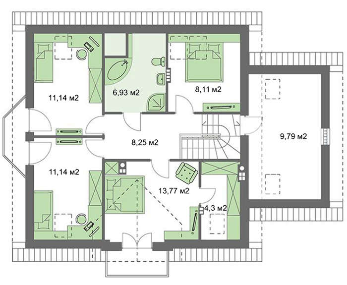 Всі наші типові проекти враховують основні потреби середньостатистичної сім'ї, щоправда, в такому випадку говорити про індивідуальність вашого майбутнього житла не доводиться. Але, щоб будинок виглядав оригінально і повністю відповідав вашим вимогам, ми готові внести зміни в проект.