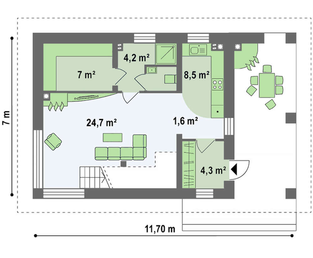 Всі наші типові проекти враховують основні потреби середньостатистичної сім'ї, щоправда, в такому випадку говорити про індивідуальність вашого майбутнього житла не доводиться. Але, щоб будинок виглядав оригінально і повністю відповідав вашим вимогам, ми готові внести зміни в проект.