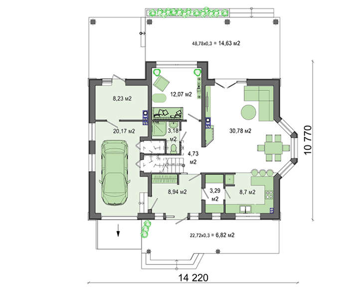Всі наші типові проекти враховують основні потреби середньостатистичної сім'ї, щоправда, в такому випадку говорити про індивідуальність вашого майбутнього житла не доводиться. Але, щоб будинок виглядав оригінально і повністю відповідав вашим вимогам, ми готові внести зміни в проект.