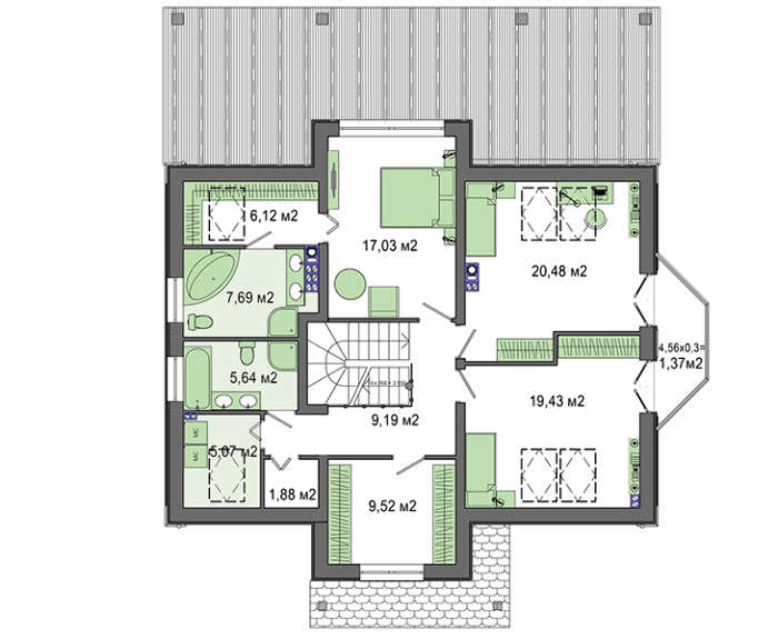 | Кут нахилу покрівлі: | 42 ° |