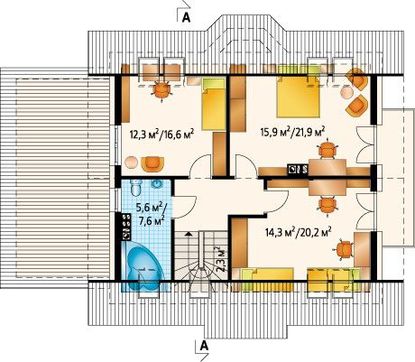 • 4M3212a Проект славного котеджу з мансардою 170 m² з гаражем на 1 авто