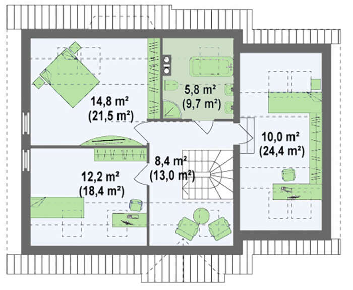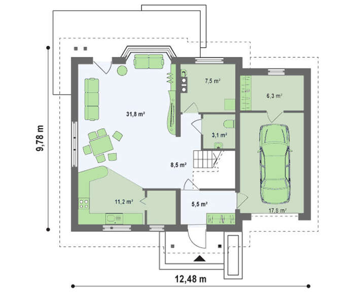 • 4M018 Проект стильного будинку з мансардою та гаражем