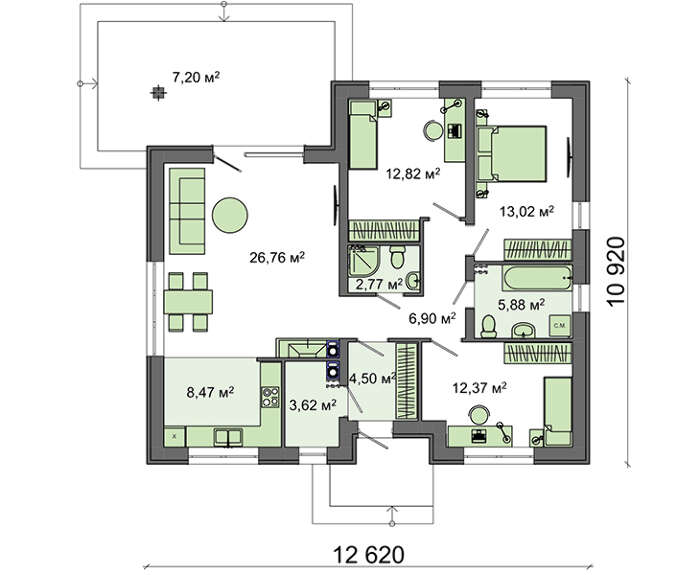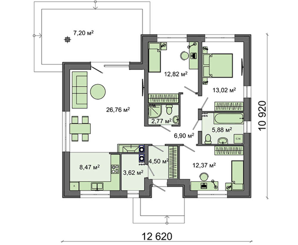 Всі наші типові проекти враховують основні потреби середньостатистичної сім'ї, щоправда, в такому випадку говорити про індивідуальність вашого майбутнього житла не доводиться. Але, щоб будинок виглядав оригінально і повністю відповідав вашим вимогам, ми готові внести зміни в проект.
