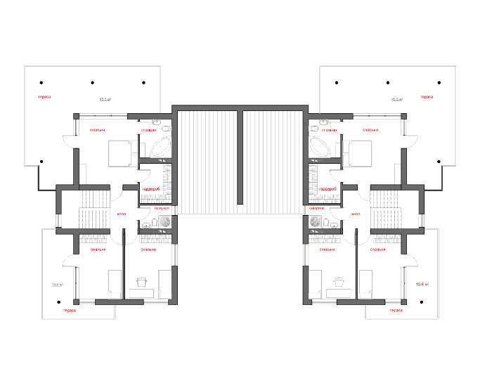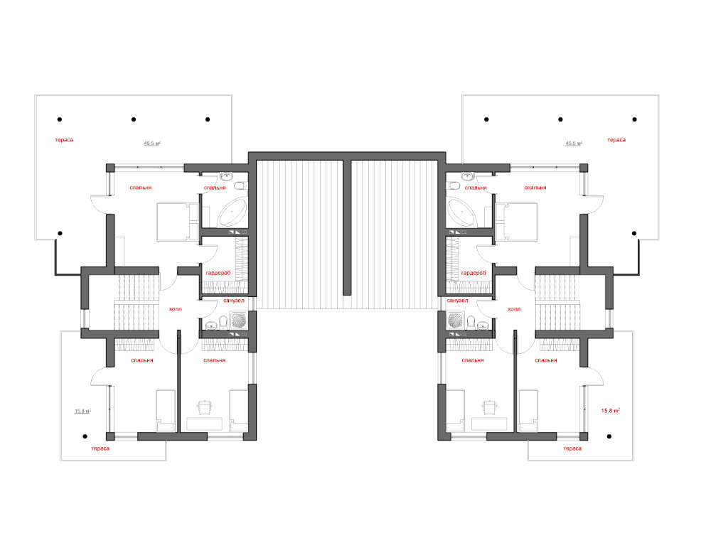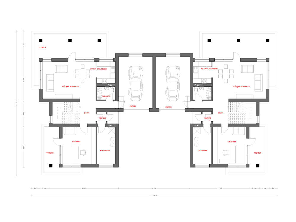 • 4M805 Проект сучасного будинку на дві сім'ї з плоским дахом