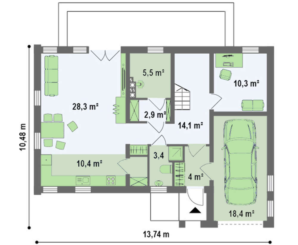 • 4M650 Проект сучасного будинку з мансардою та гаражем