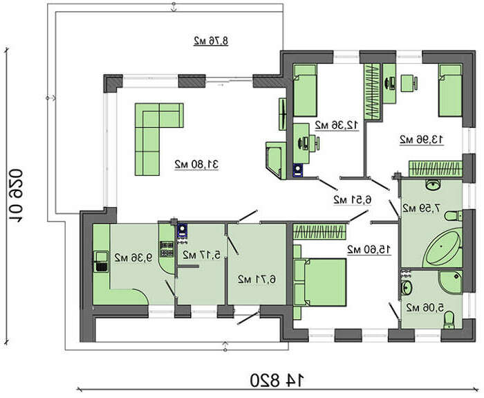 Будинок 4М646 - яскравий приклад сучасної архітектури. Плоский дах, світлий фасад, великі вікна і тераса роблять його ошатним і актуальним в будь-якому середовищі. Будь-то приватний сектор великого міста або невелике селище. Інтер'єр цього будинку теж відрізняється мінімалізмом і практичність. У ньому немає ніякої зайвої меблів: тумбочок, комодів, килимів на стінах, які так люблять наші бабусі і дідусі. Ліжко, велика шафа, в вітальні пару диванів, а в їдальні стілець та стільці. Все найнеобхідніше і дійсно потрібне.