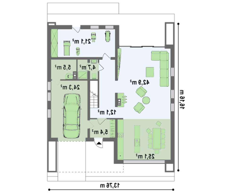 • 4M609 Проект сучасного двоповерхового будинку хай тек з гаражем і односпадним дахом
