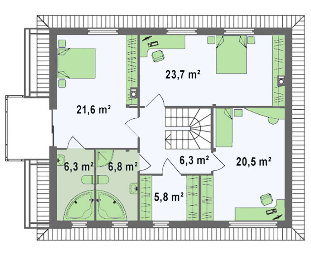 Всі наші типові проекти враховують основні потреби середньостатистичної сім'ї, щоправда, в такому випадку говорити про індивідуальність вашого майбутнього житла не доводиться. Але, щоб будинок виглядав оригінально і повністю відповідав вашим вимогам, ми готові внести зміни в проект.