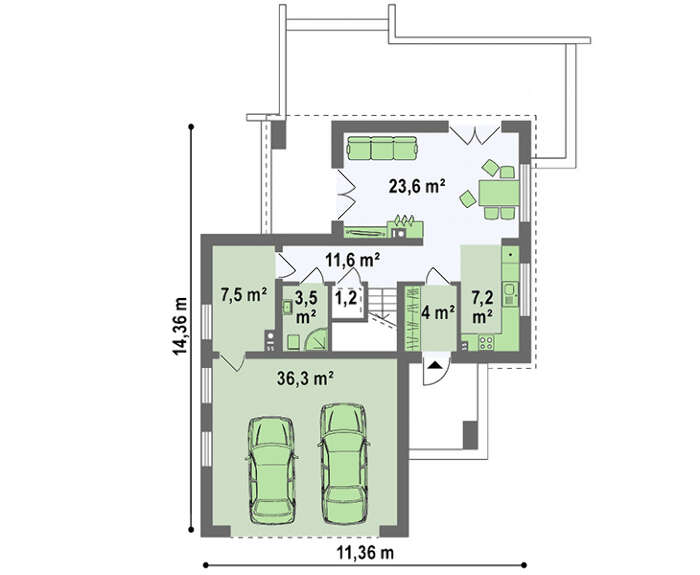 • 4M175 Проект сучасного компактного двоповерхового будинку площею 150 m²