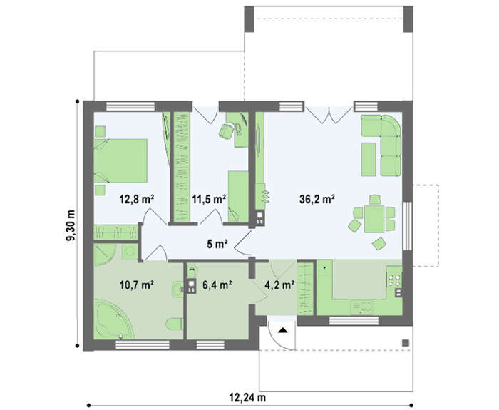Всі наші типові проекти враховують основні потреби середньостатистичної сім'ї, щоправда, в такому випадку говорити про індивідуальність вашого майбутнього житла не доводиться. Але, щоб будинок виглядав оригінально і повністю відповідав вашим вимогам, ми готові внести зміни в проект.