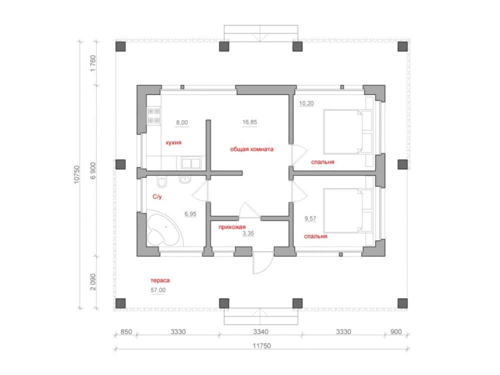 Всі наші типові проекти враховують основні потреби середньостатистичної сім'ї, щоправда, в такому випадку говорити про індивідуальність вашого майбутнього житла не доводиться. Але, щоб будинок виглядав оригінально і повністю відповідав вашим вимогам, ми готові внести зміни в проект.