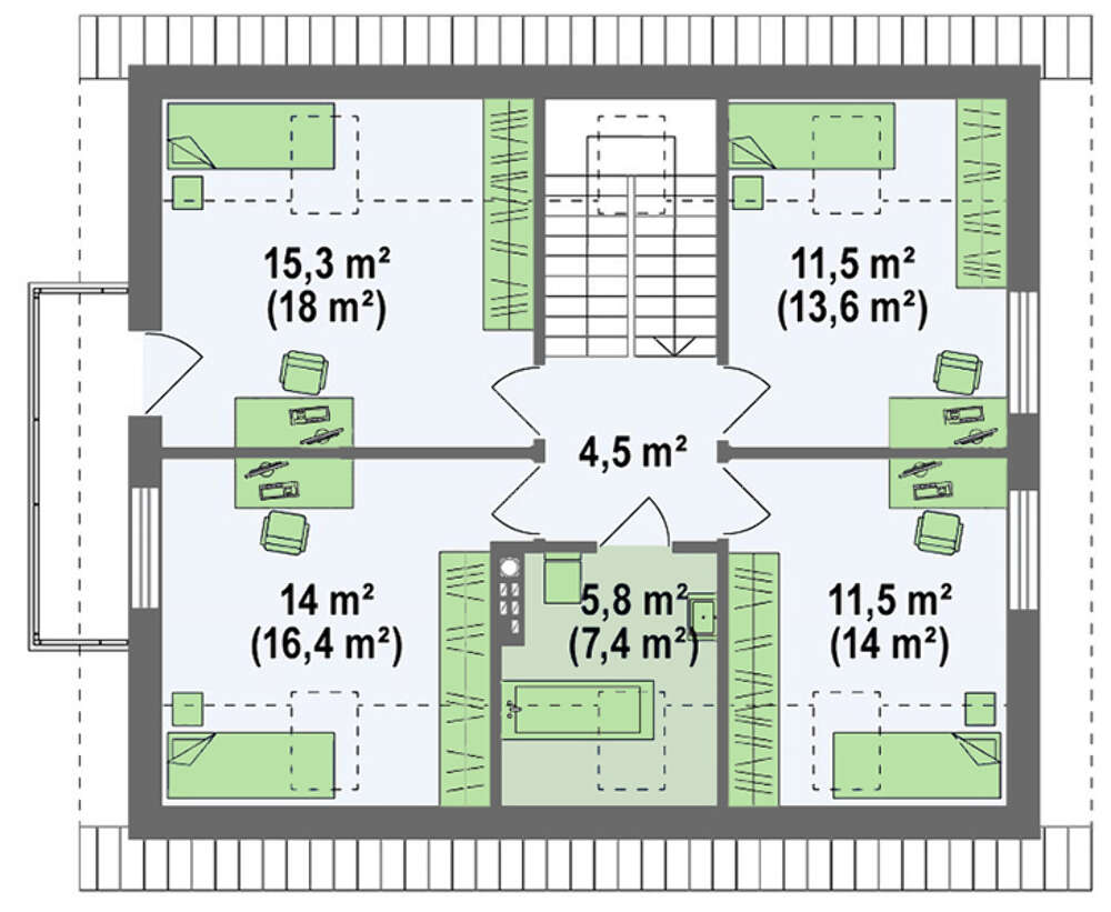 • 4M7145 Проект світлого будинку з мансардою загальною площею 151 кв.м.