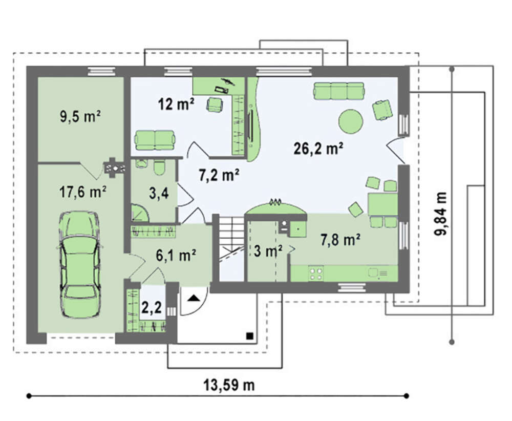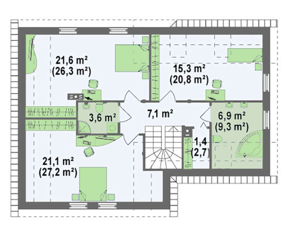 Проект світлого приватного котеджу з мансардою площею 192 кв.м.