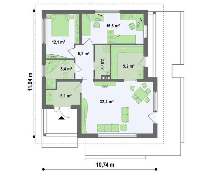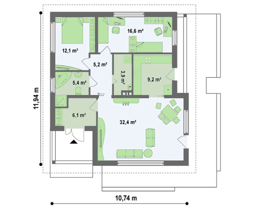 Проект світлого одноповерхового будинку площею 90 кв.м.