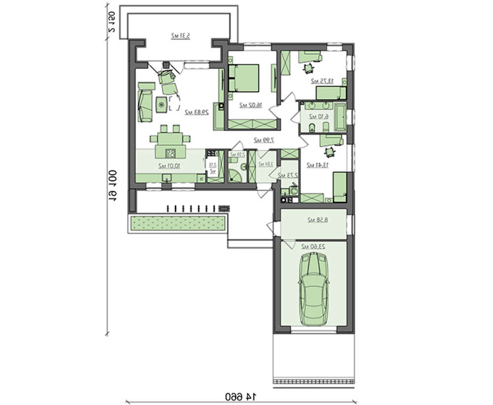 Проект світлого одноповерхового котеджу загальною площею 145 кв.м 4M1495