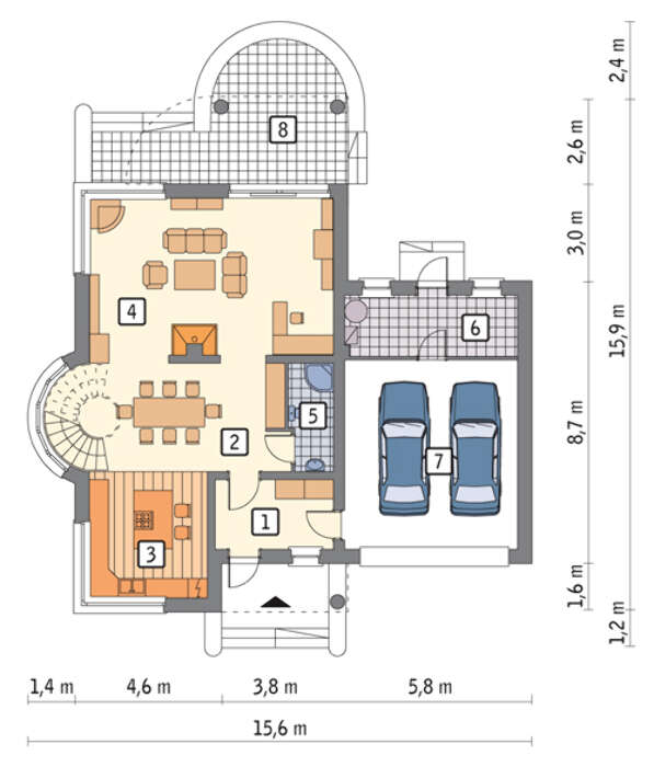 Проект витонченого двоповерхового будинку з просторим гаражем 4M6394