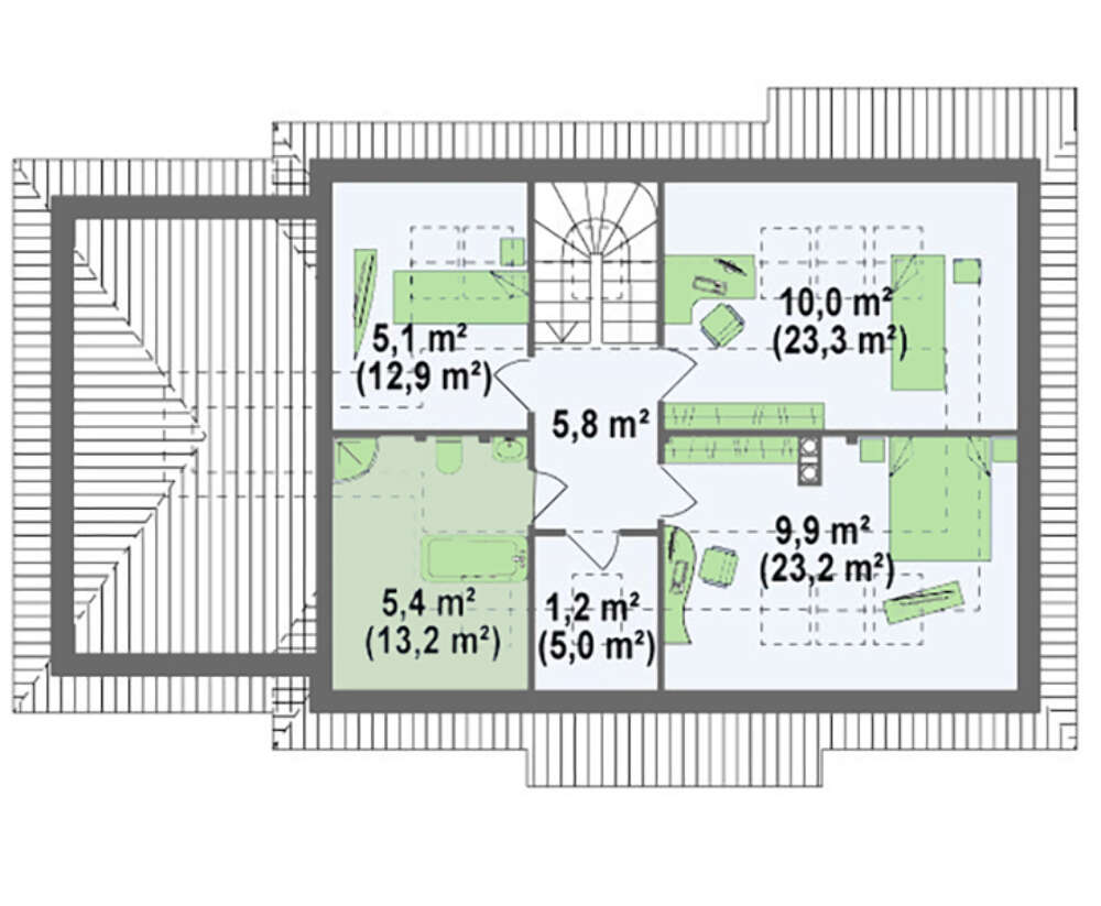 | Кут нахилу покрівлі: | 35° / 45 ° |