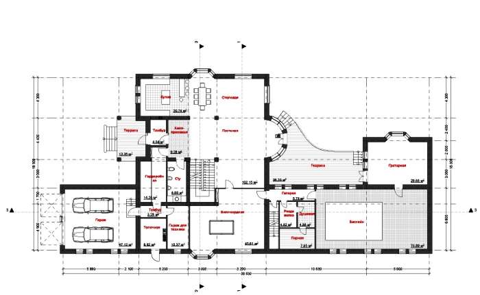 Проект заміського котеджу з гаражем і басейном 4M1877