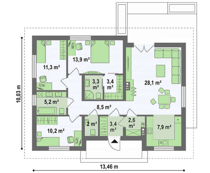 Всі наші типові проекти враховують основні потреби середньостатистичної сім'ї, щоправда, в такому випадку говорити про індивідуальність вашого майбутнього житла не доводиться. Але, щоб будинок виглядав оригінально і повністю відповідав вашим вимогам, ми готові внести зміни в проект.