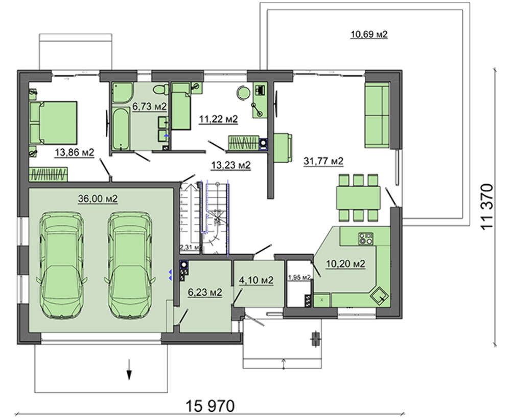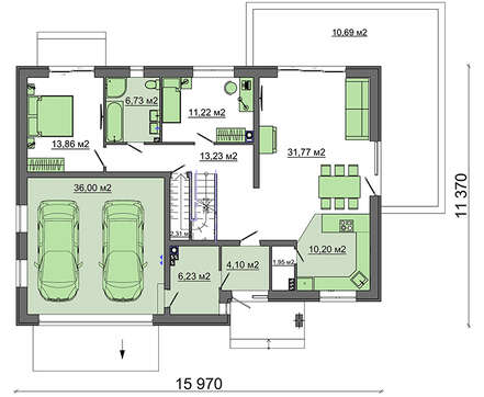 • 4M749 Проект житлового будинку з гаражем на два автомобіля