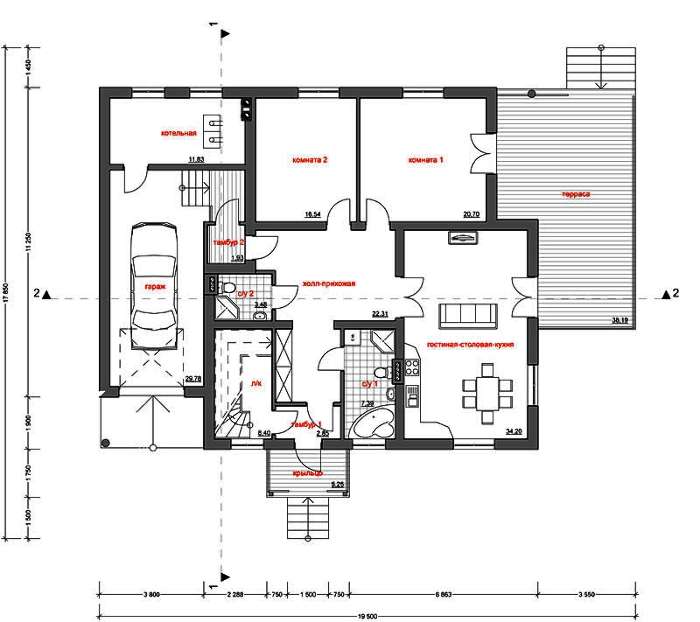 Всі наші типові проекти враховують основні потреби середньостатистичної сім'ї, щоправда, в такому випадку говорити про індивідуальність вашого майбутнього житла не доводиться. Але, щоб будинок виглядав оригінально і повністю відповідав вашим вимогам, ми готові внести зміни в проект.