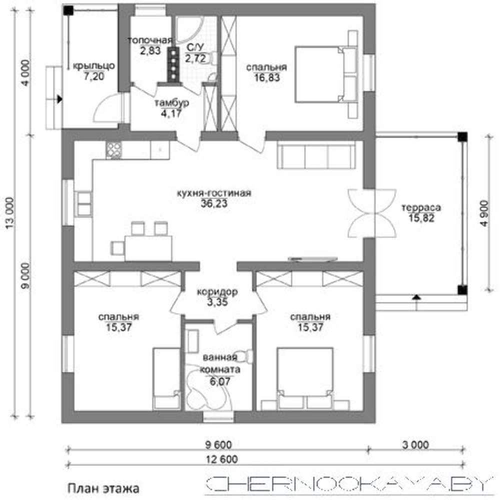 Всі наші типові проекти враховують основні потреби середньостатистичної сім'ї, щоправда, в такому випадку говорити про індивідуальність вашого майбутнього житла не доводиться. Але, щоб будинок виглядав оригінально і повністю відповідав вашим вимогам, ми готові внести зміни в проект.