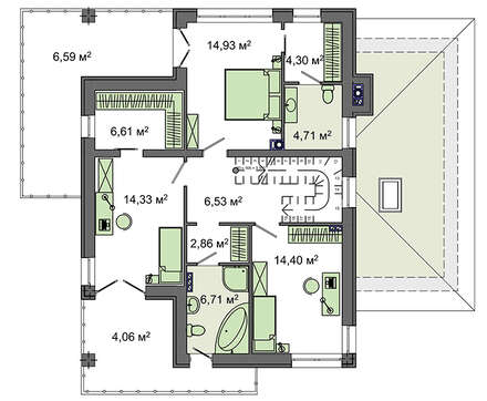 Для підвищення рівня комфорту в їх склад включені гардеробні та санітарні приміщення. передбачені просторі веранди. Балконні площі яких можна розглядати як продовження житлових кімнат, використовувати для прийому гостей і організації романтичних вечірок.