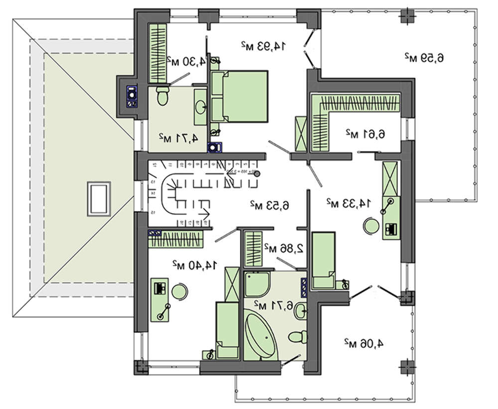Для підвищення рівня комфорту в їх склад включені гардеробні та санітарні приміщення. передбачені просторі веранди. Балконні площі яких можна розглядати як продовження житлових кімнат, використовувати для прийому гостей і організації романтичних вечірок.