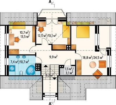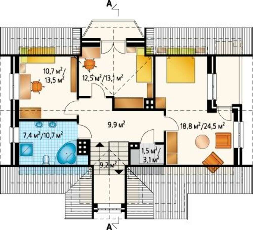 Верхній рівень - житлова територія, яка містить особисті спальні домочадців, дві з яких мають вихід на балкони.
