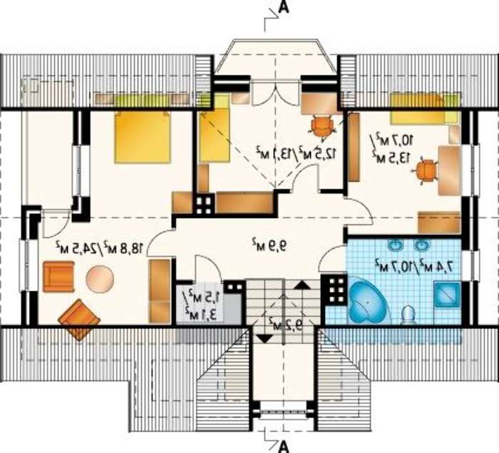 Верхній рівень - житлова територія, яка містить особисті спальні домочадців, дві з яких мають вихід на балкони.