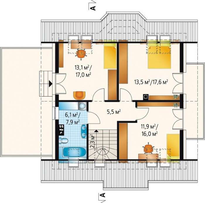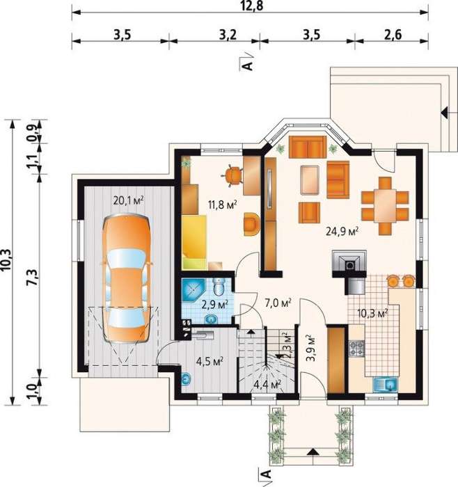 • 4M3212e Симпатичний проект мансардного будинку в традиційному стилі з прибудованим гаражем на 1 авто
