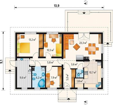 Стильне одноповерхова будівля з кабінетом 4M3594