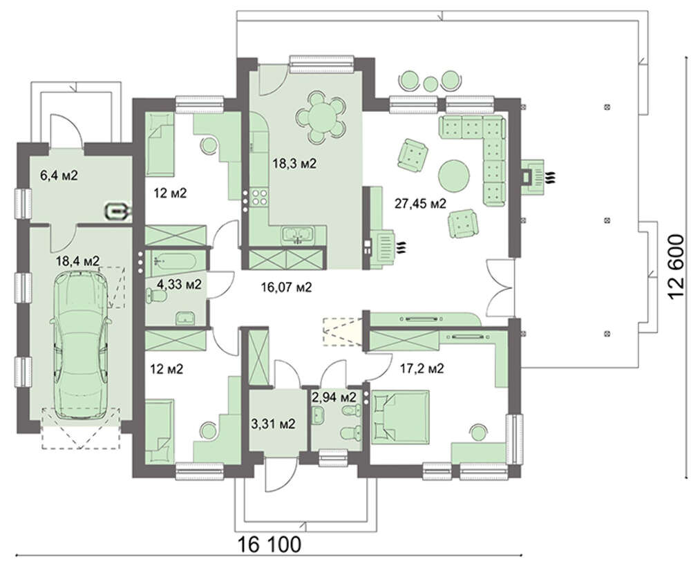 Всі наші типові проекти враховують основні потреби середньостатистичної сім'ї, щоправда, в такому випадку говорити про індивідуальність вашого майбутнього житла не доводиться. Але, щоб будинок виглядав оригінально і повністю відповідав вашим вимогам, ми готові внести зміни в проект.