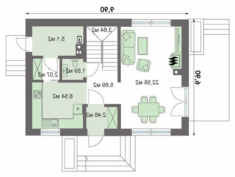 • 4M779 Стильний невеликий житловий будинок на два поверхи