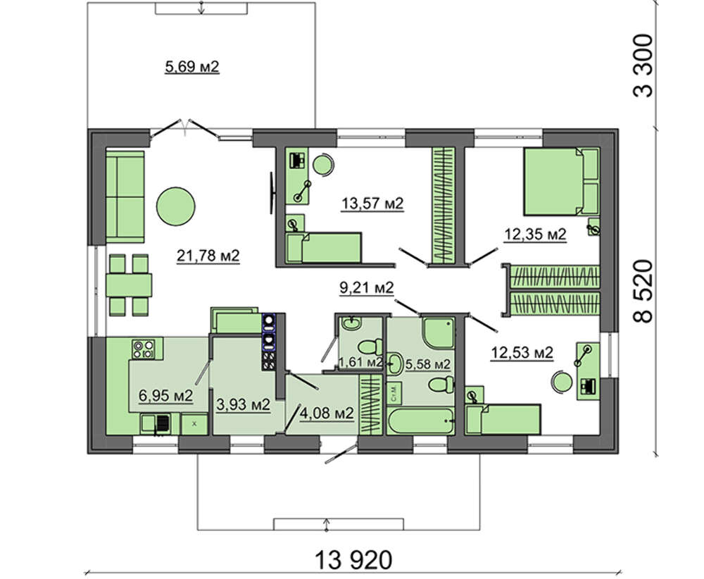 Всі наші типові проекти враховують основні потреби середньостатистичної сім'ї, щоправда, в такому випадку говорити про індивідуальність вашого майбутнього житла не доводиться. Але, щоб будинок виглядав оригінально і повністю відповідав вашим вимогам, ми готові внести зміни в проект.