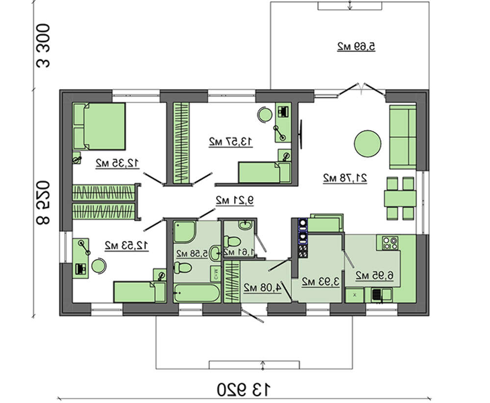 Всі наші типові проекти враховують основні потреби середньостатистичної сім'ї, щоправда, в такому випадку говорити про індивідуальність вашого майбутнього житла не доводиться. Але, щоб будинок виглядав оригінально і повністю відповідав вашим вимогам, ми готові внести зміни в проект.
