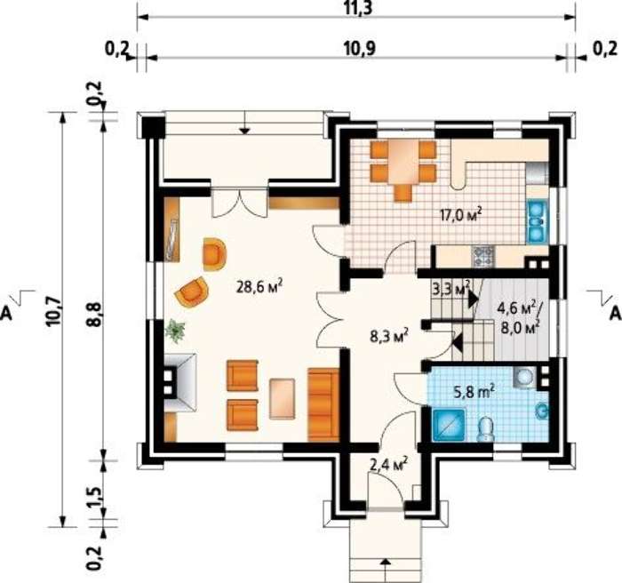 Дах:керамічна черепиця, металочерепиця, цементно-піщана черепиця