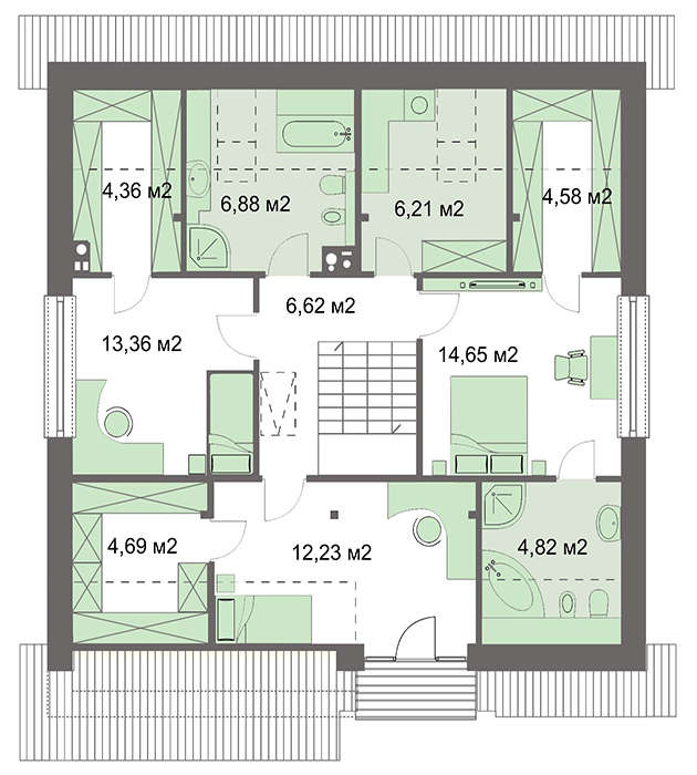 | Дах: | керамічна черепиця, металочерепиця, цементно-піщана черепиця |