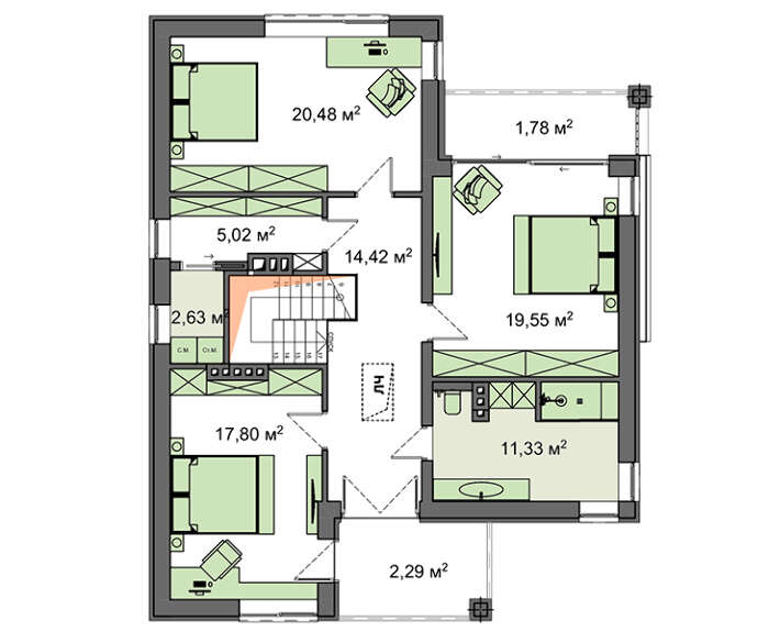 Всі наші типові проекти враховують основні потреби середньостатистичної сім'ї, щоправда, в такому випадку говорити про індивідуальність вашого майбутнього житла не доводиться. Але, щоб будинок виглядав оригінально і повністю відповідав вашим вимогам, ми готові внести зміни в проект.