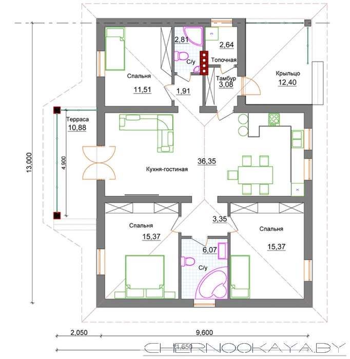 | Загальна площа: | 105.00 м2 |