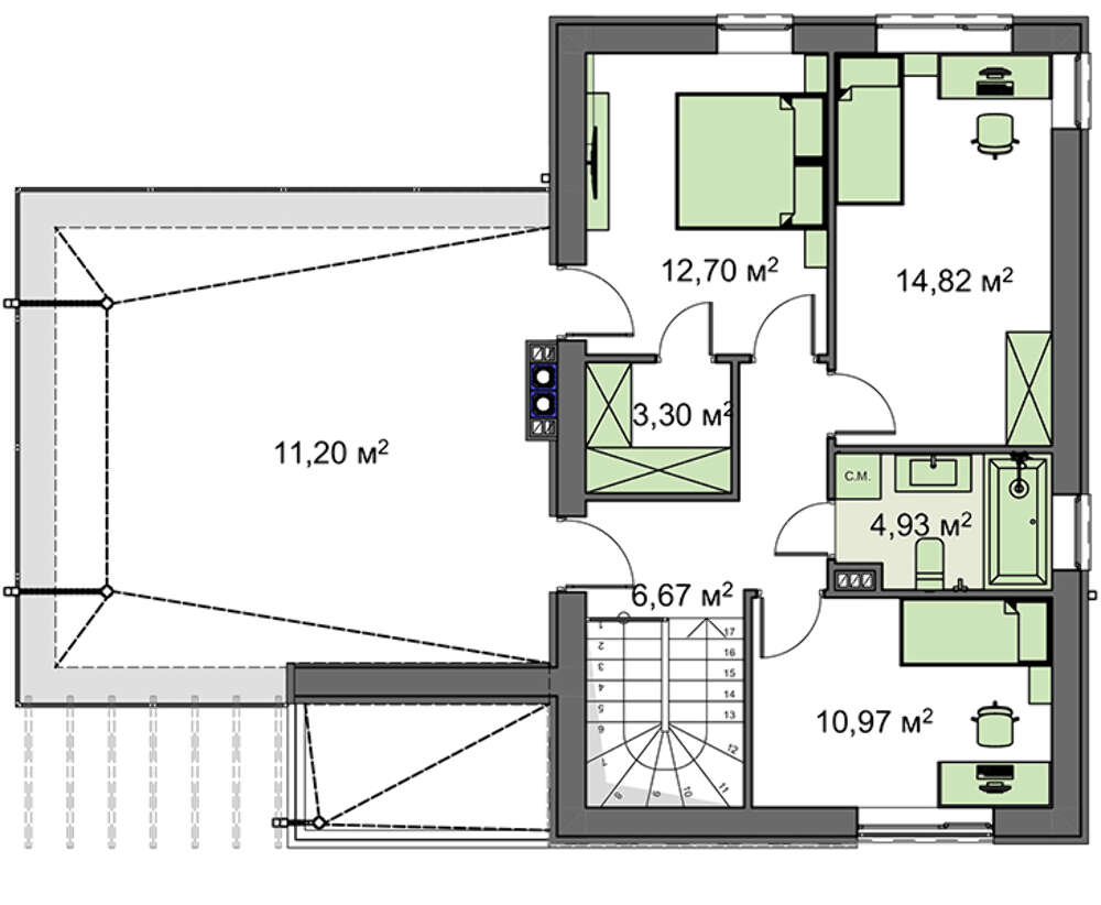 Всі наші типові проекти враховують основні потреби середньостатистичної сім'ї, щоправда, в такому випадку говорити про індивідуальність вашого майбутнього житла не доводиться. Але, щоб будинок виглядав оригінально і повністю відповідав вашим вимогам, ми готові внести зміни в проект.