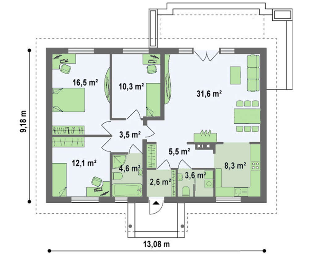 Всі наші типові проекти враховують основні потреби середньостатистичної сім'ї, щоправда, в такому випадку говорити про індивідуальність вашого майбутнього житла не доводиться. Але, щоб будинок виглядав оригінально і повністю відповідав вашим вимогам, ми готові внести зміни в проект.