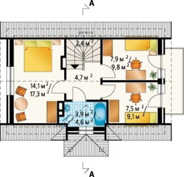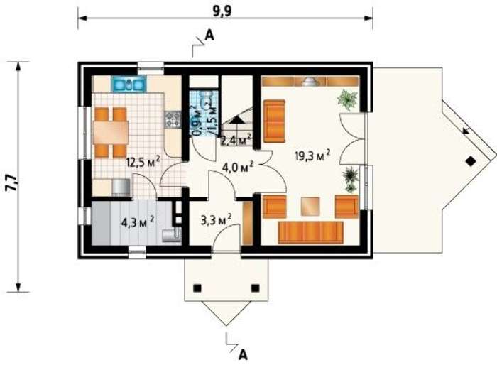 План невеликого житлового будинку з трьома спальнями 4M3532