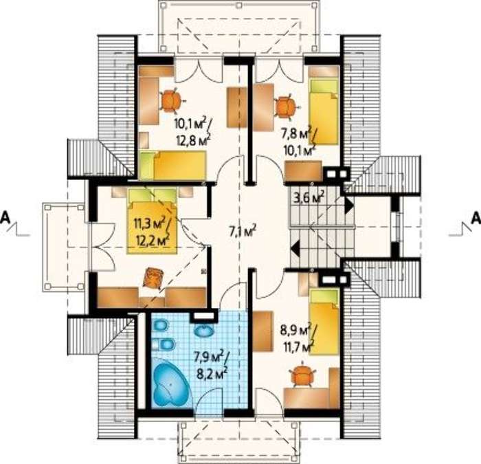 План чудового будинку з еркерами і балконами 4M3408