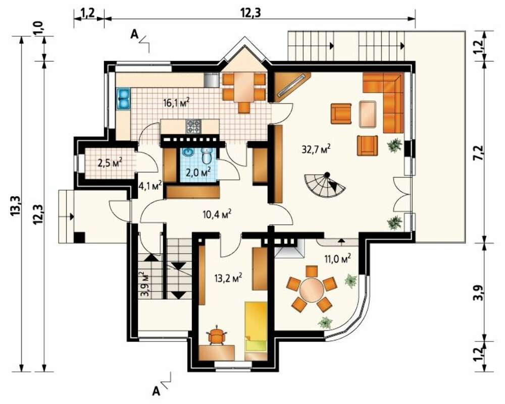 Цікавий проект котеджу для нерівної ділянки 4M3485