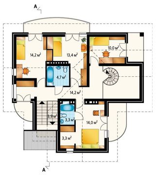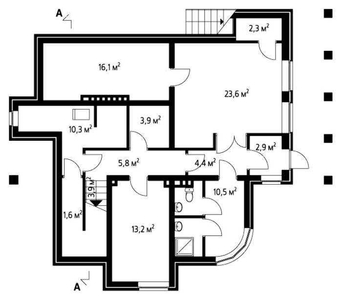 • 4M3485 Цікавий проект котеджу для нерівної ділянки