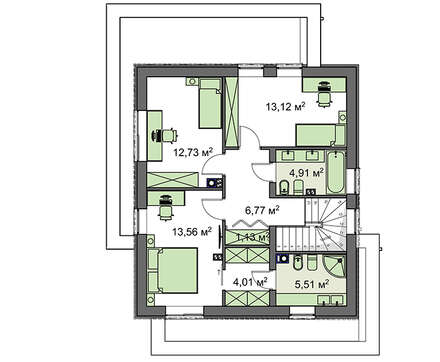 Планування двоповерхового котеджу на 133 кв. м з чотирма спальнями і трьома санвузлами 4M7112