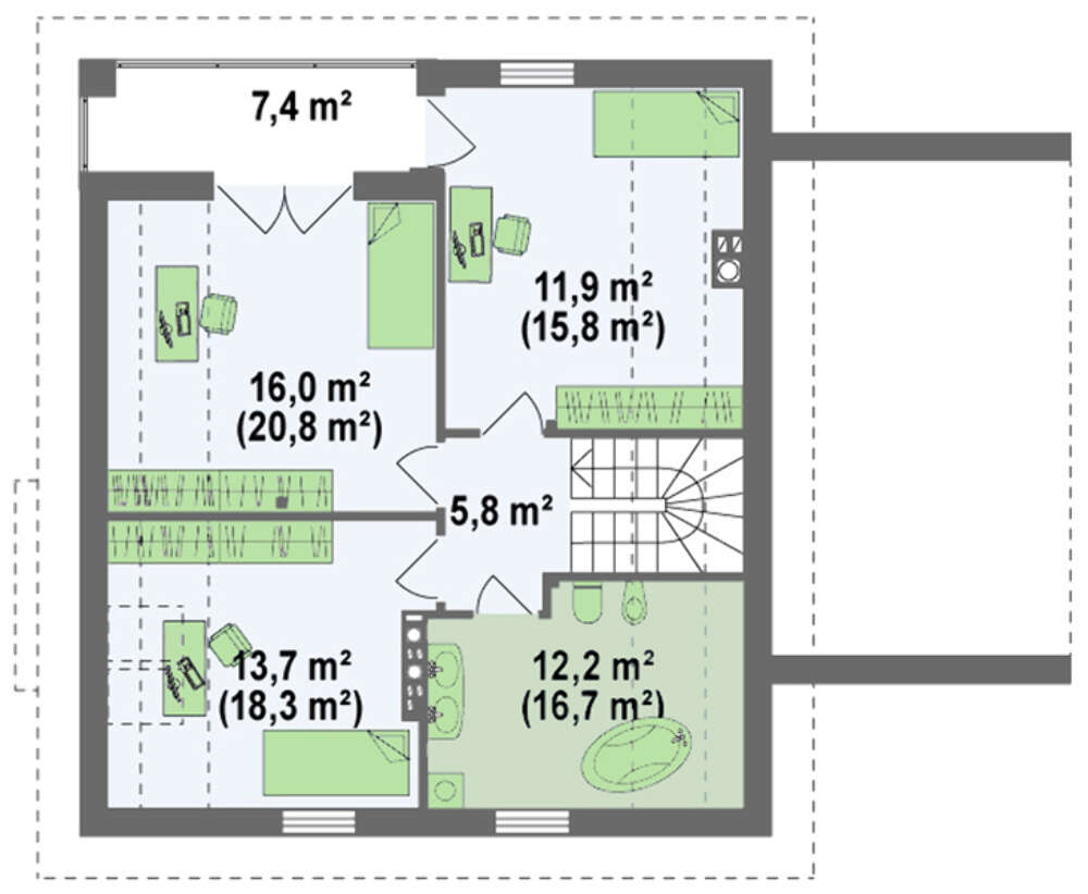 • 4M7140 Проект сучасного будинку в два поверхи на 184 кв. м з балконом і терасою