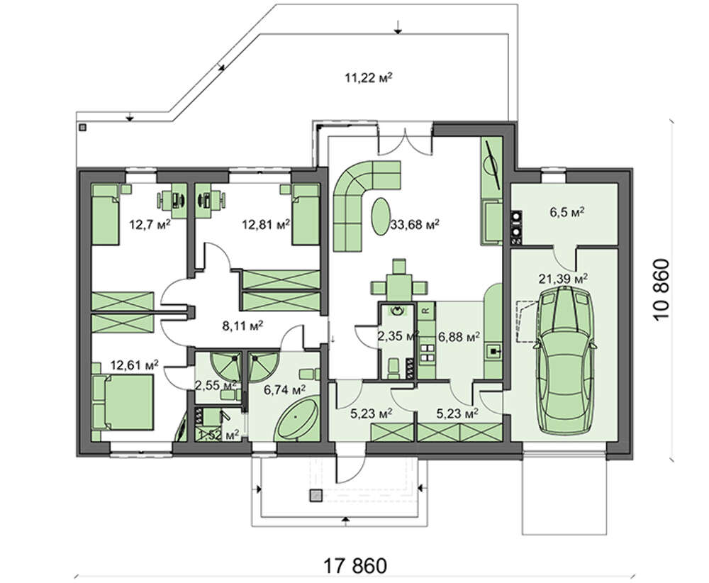 • 4M090a Версія одноповерхового будинку 4M090 з переплануванням