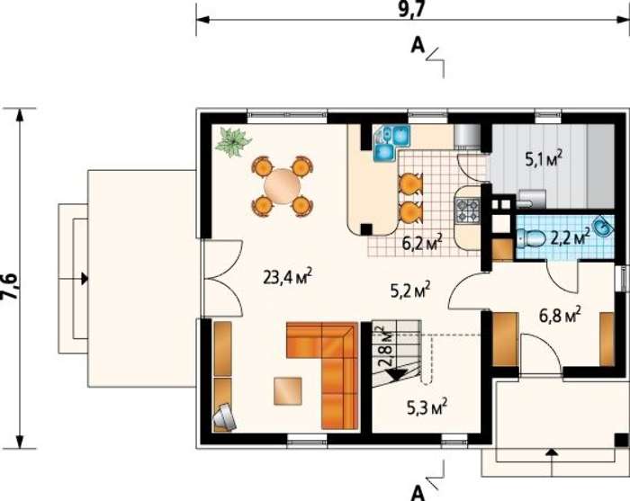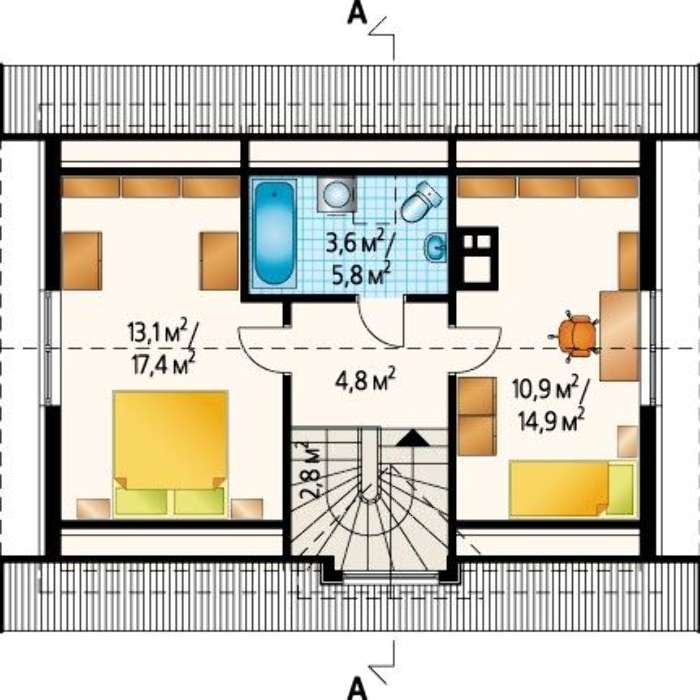 Двоповерховий дачний будиночок припаде до душі забудовникам, які віддають перевагу шум і швидкість мегаполісу тиші і розміреним заміського життя. Проект ідеально підходить для активних і енергійних особистостей, можна використовувати як для невеликої дачі, так і для заміської резиденції. Завдяки компактним розмірам котедж не займає багато місця на ділянці. Обов'язкова умова всіх українських подвір'їв - це сад, багато господарів висаджують фруктові дерева.